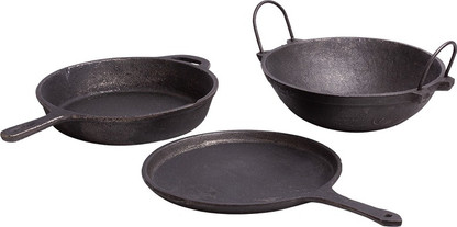 set of cast iron cookware