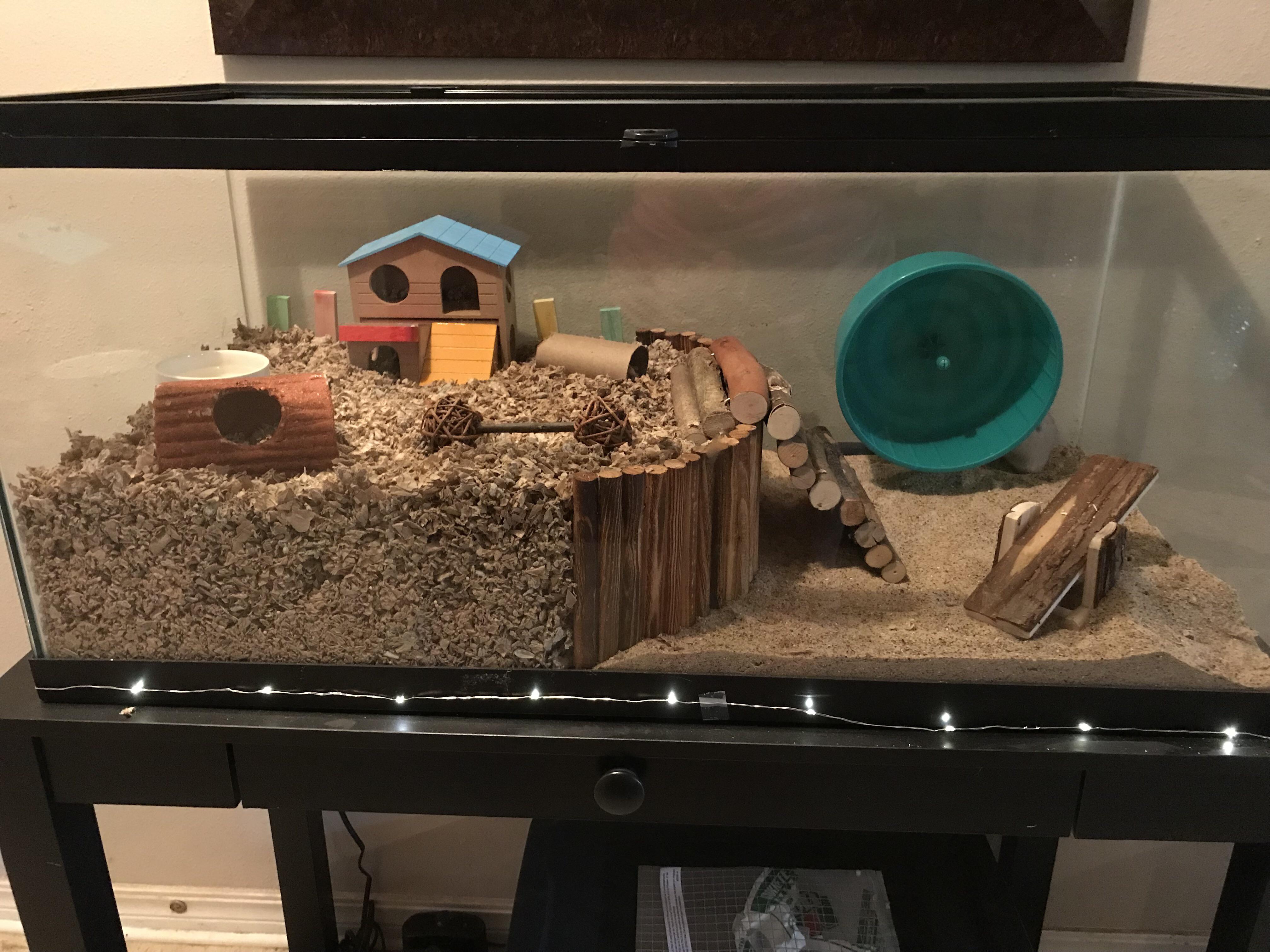 setting up a hamster cage