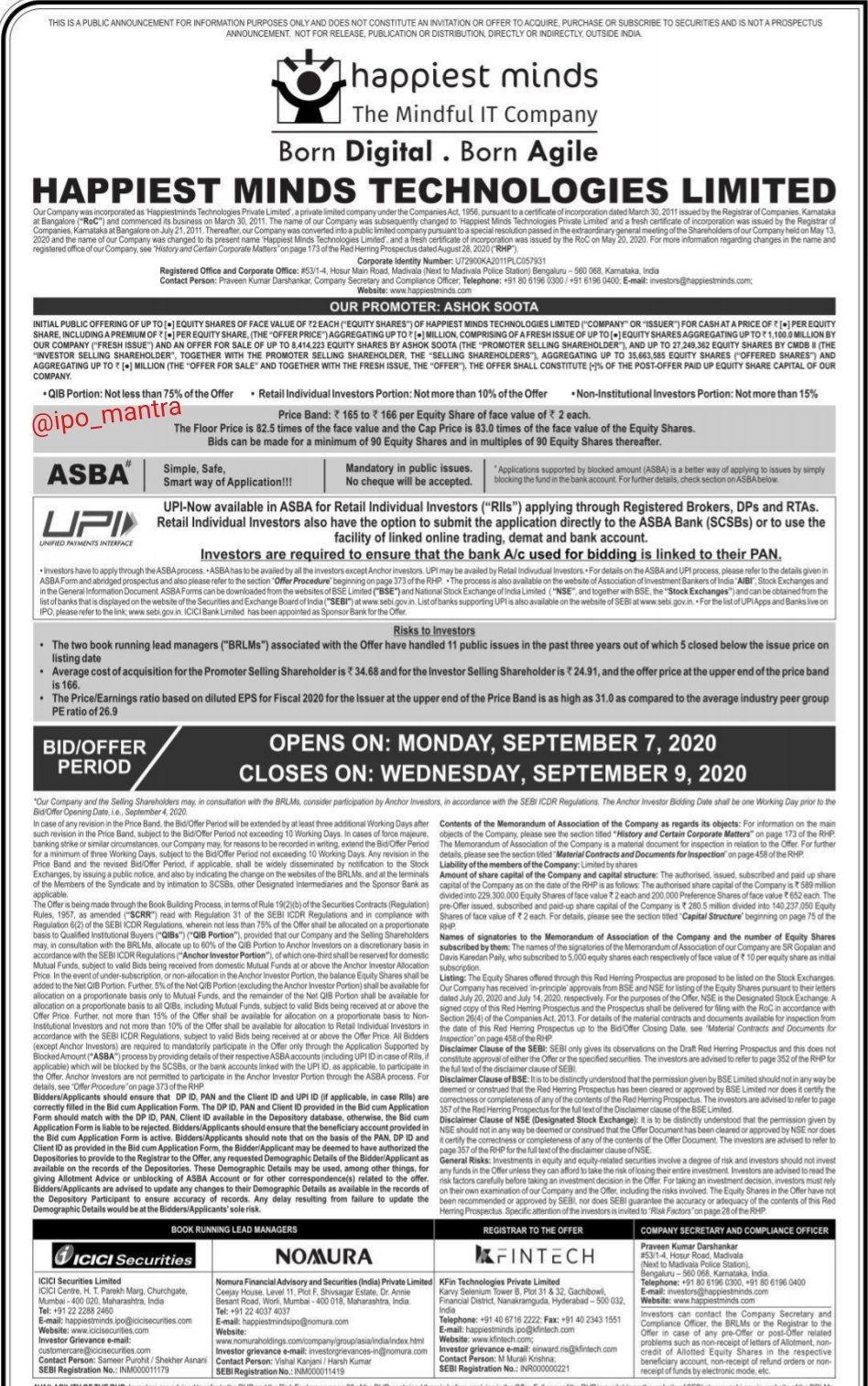 share price of happiest minds