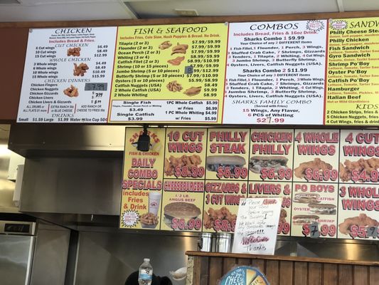 sharks fish and chicken menu