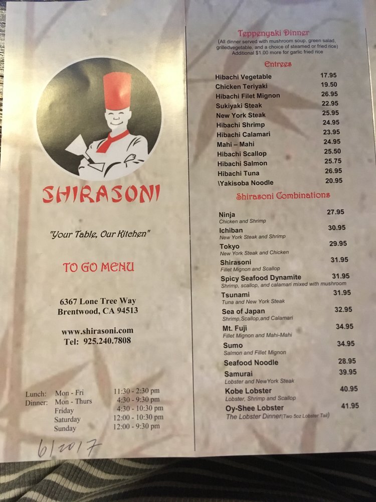 shirasoni menu