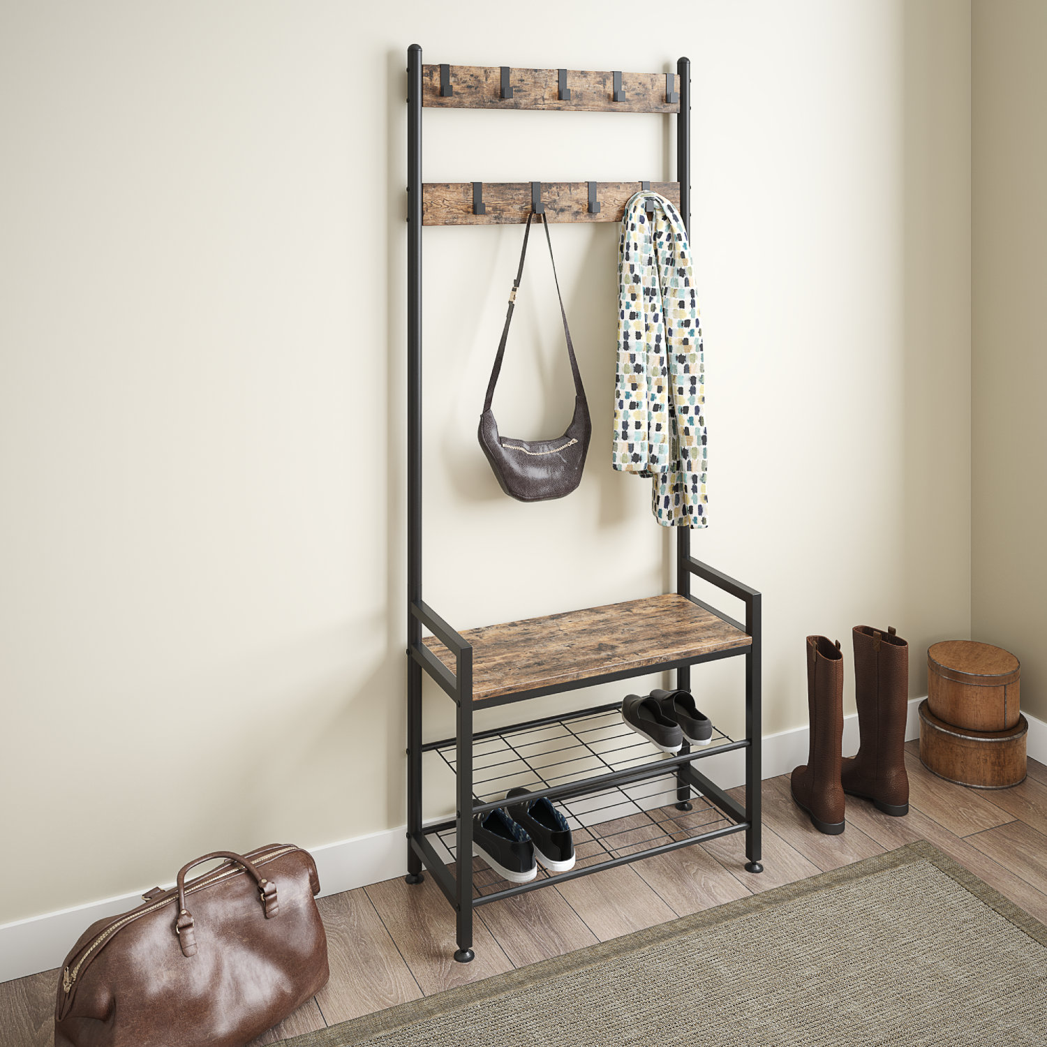 shoe and coat rack bench