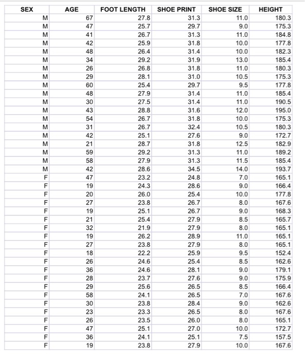 shoe size to height