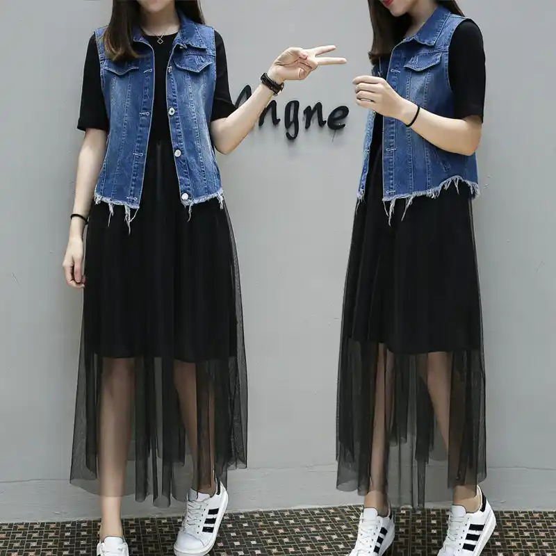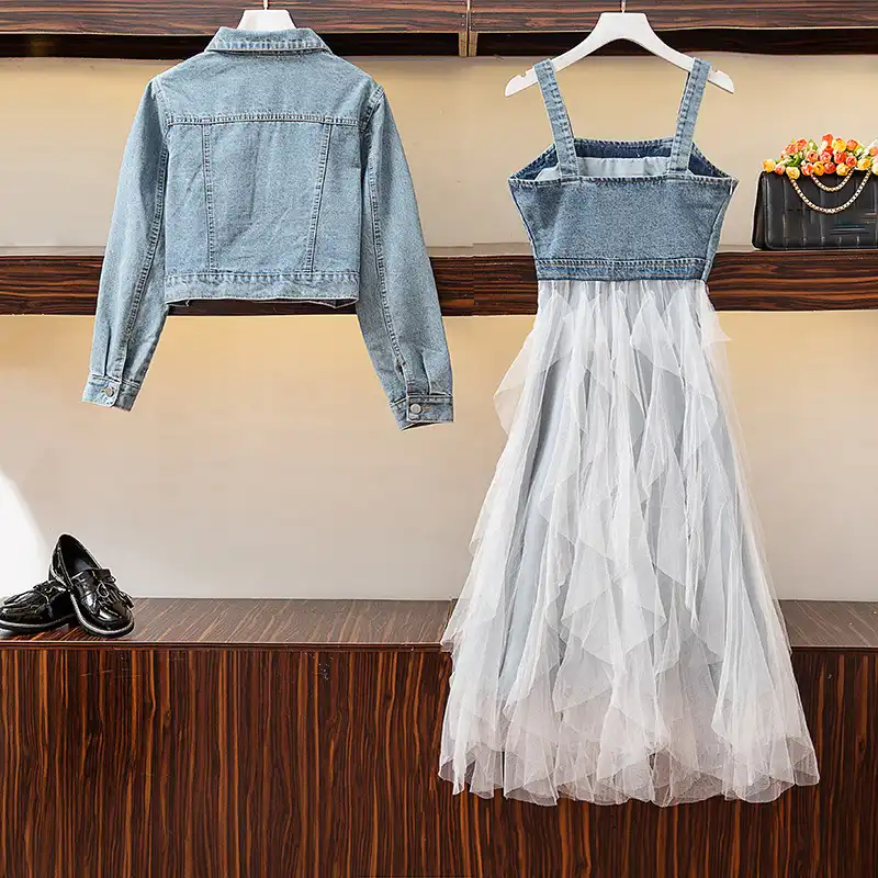 short frock with denim jacket