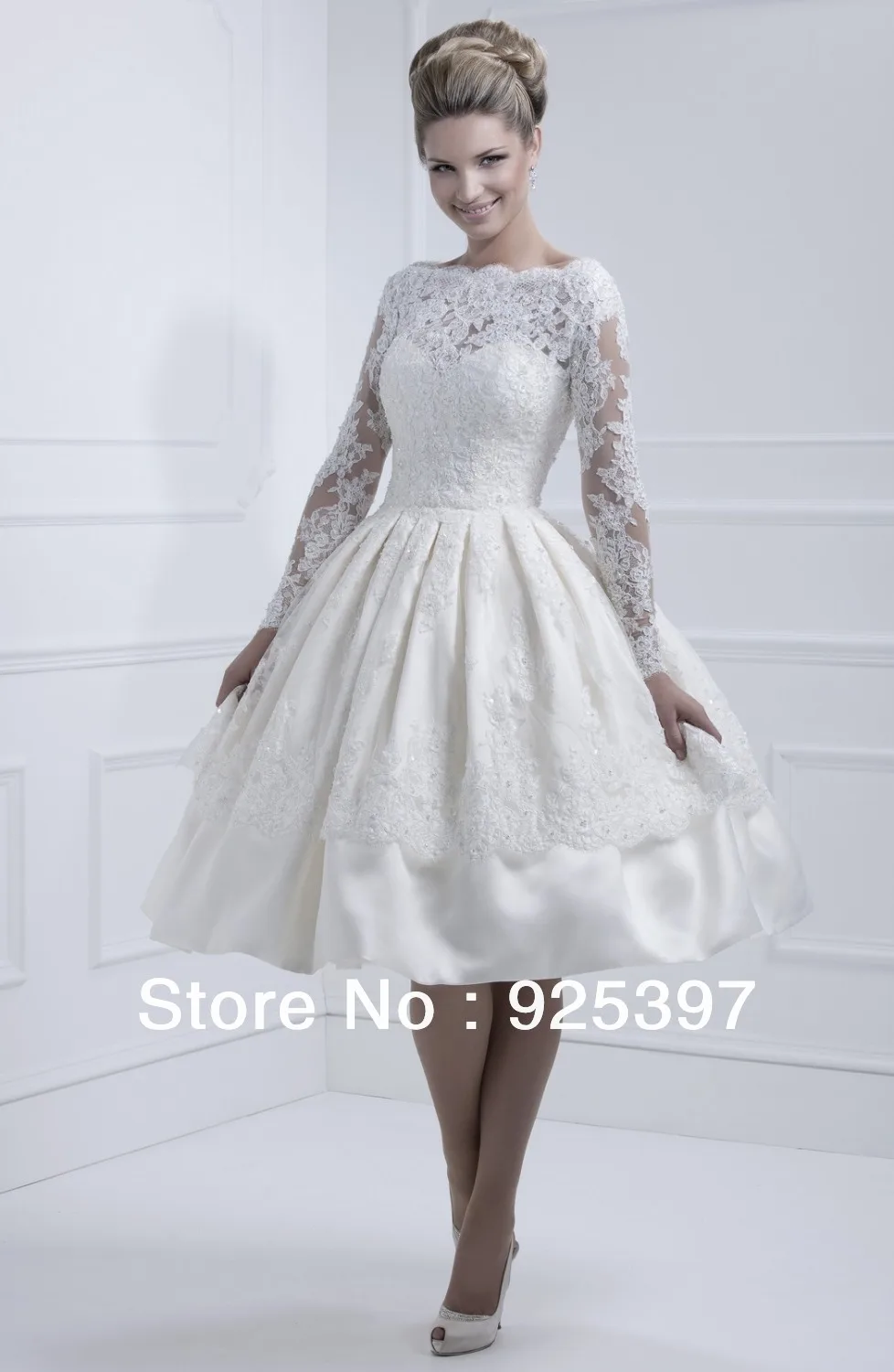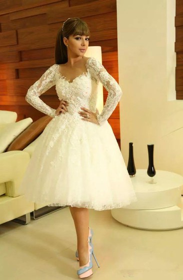 short wedding dress with long sleeves