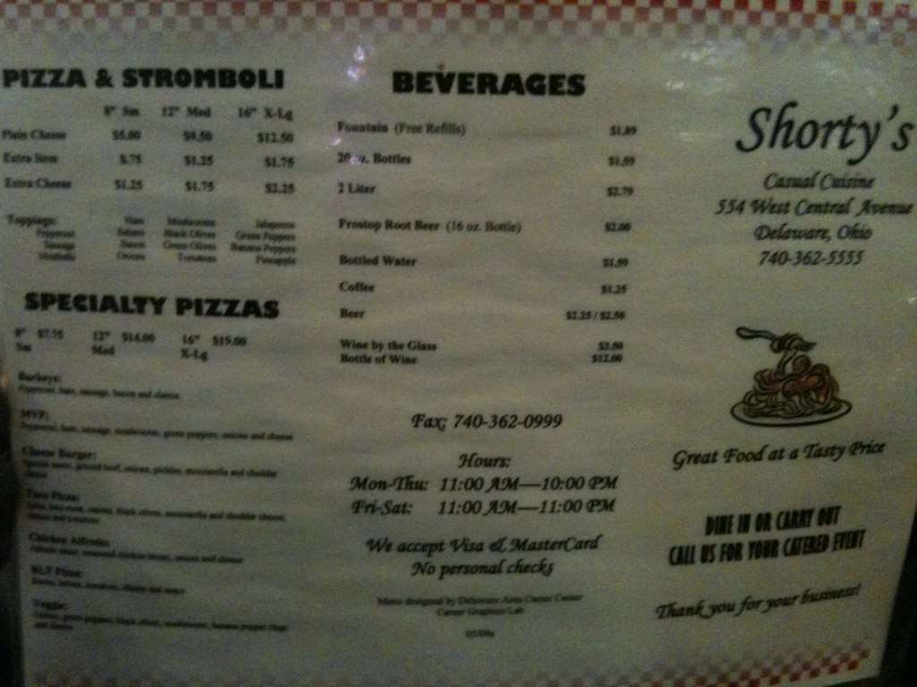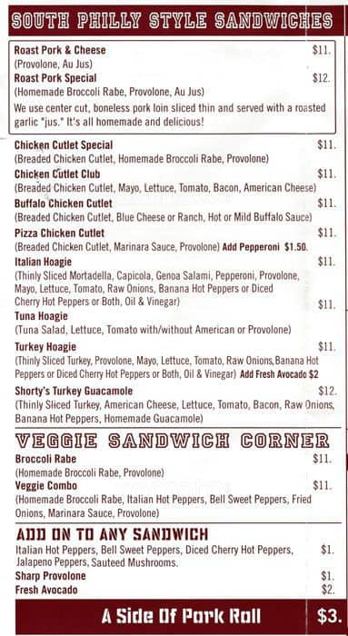 shorties menu