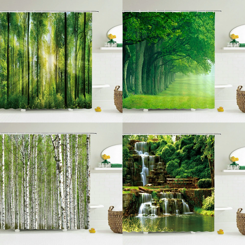 shower curtain forest