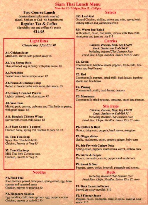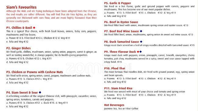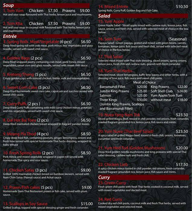 siam thai menu