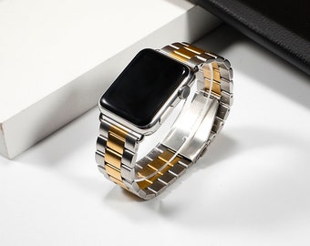 silver and gold apple watch band