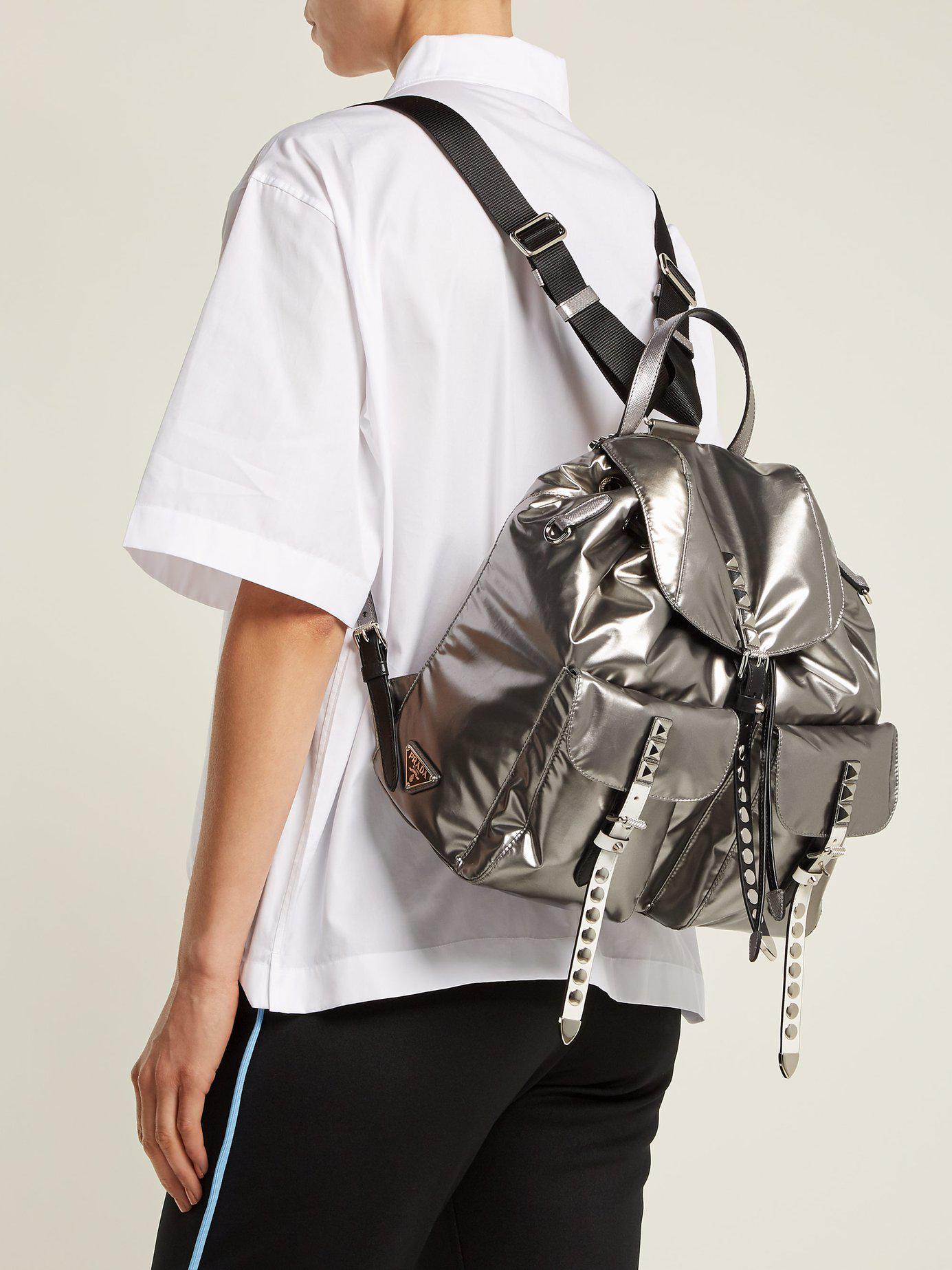 silver backpack