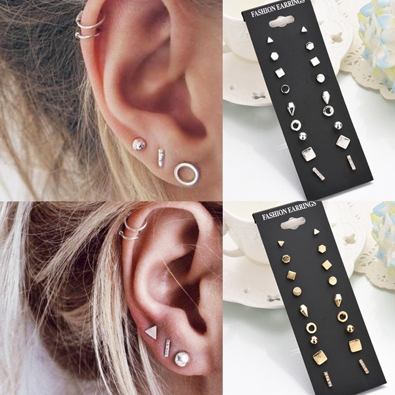 silver earring stud set