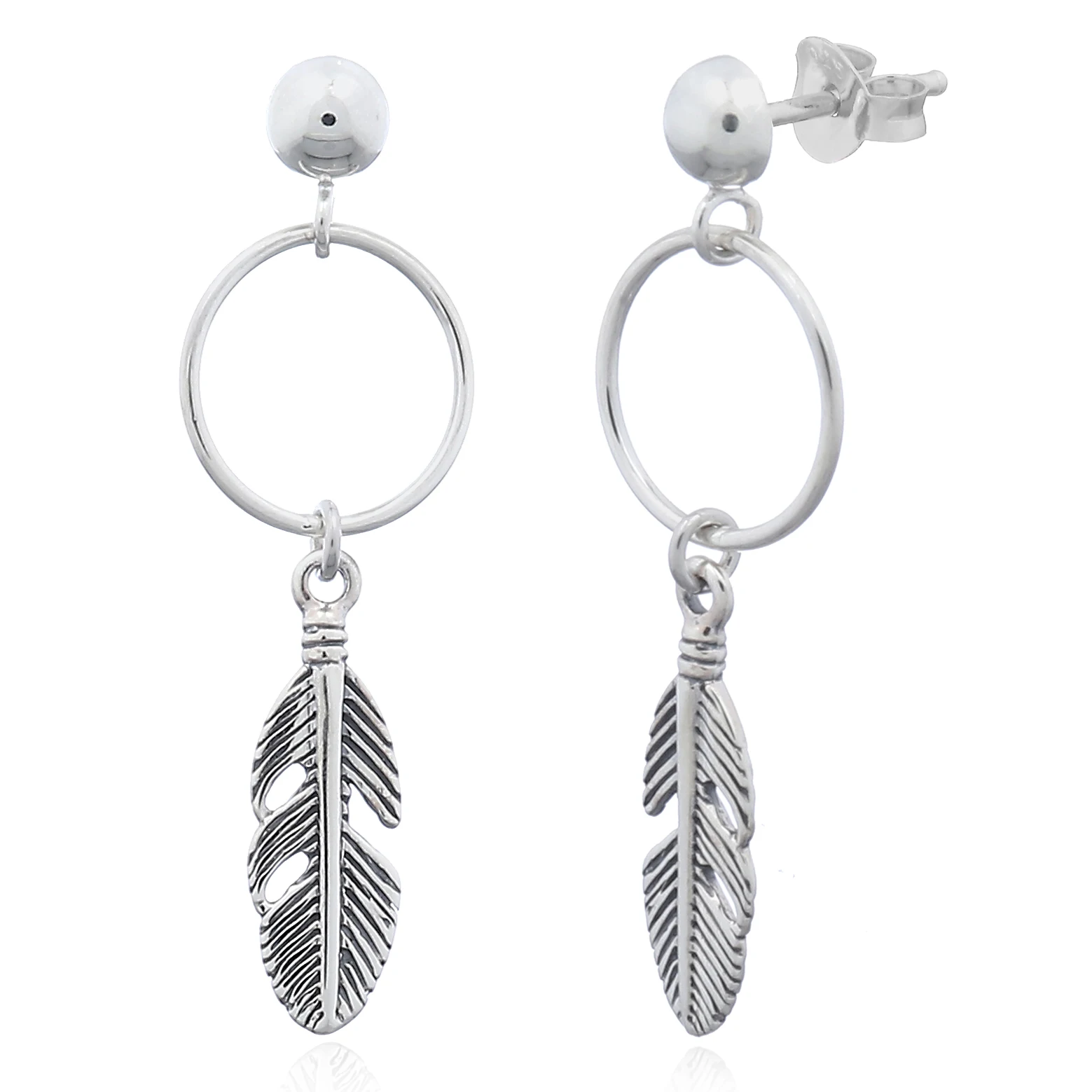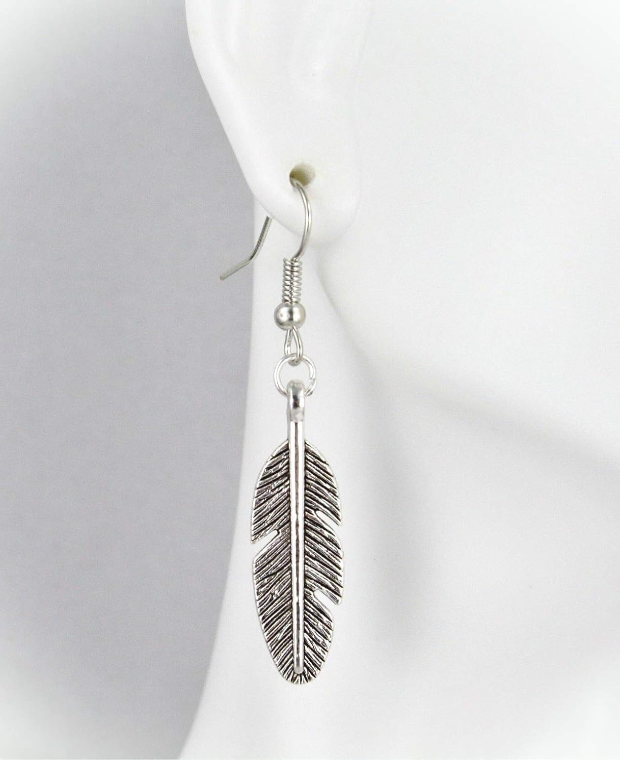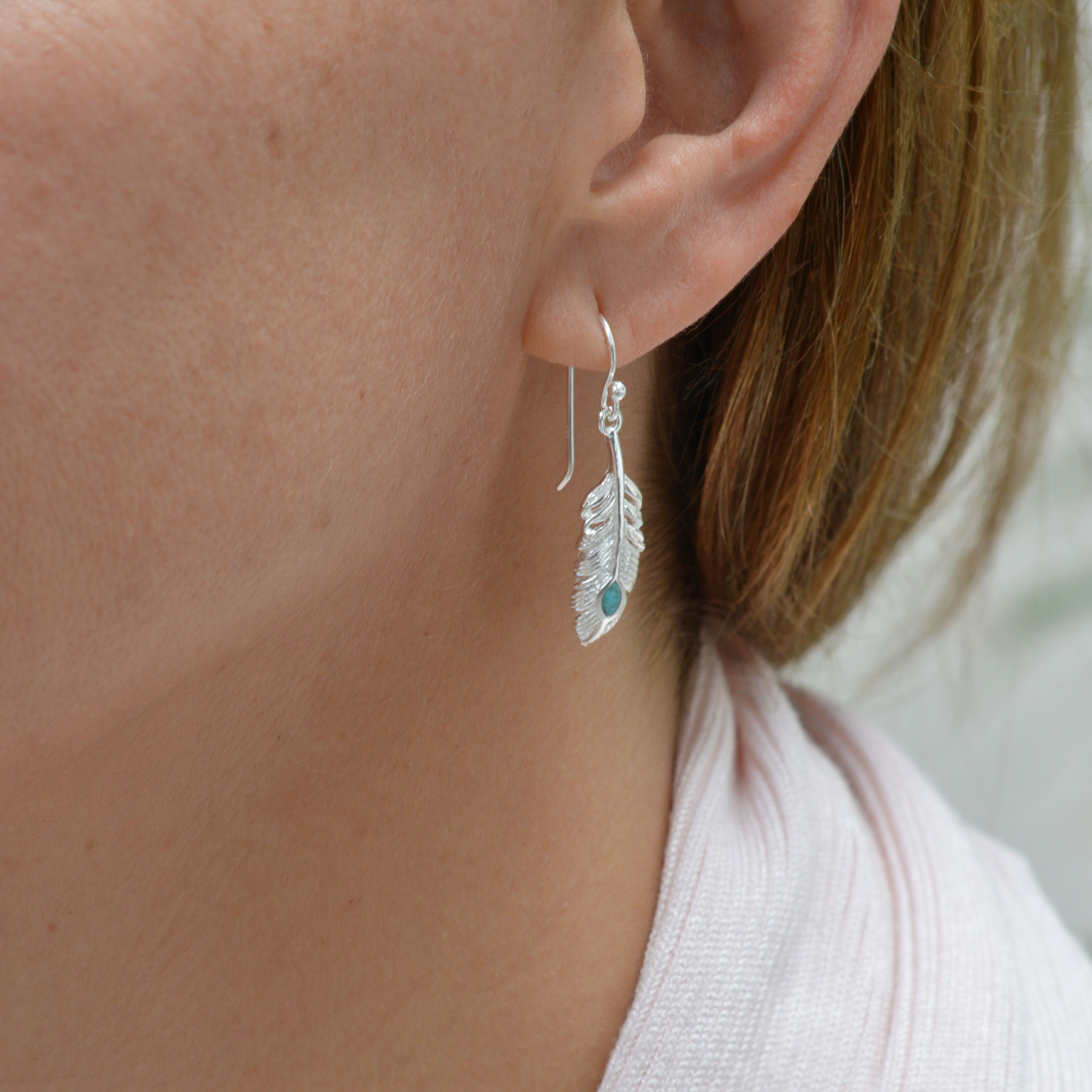 silver feather earrings