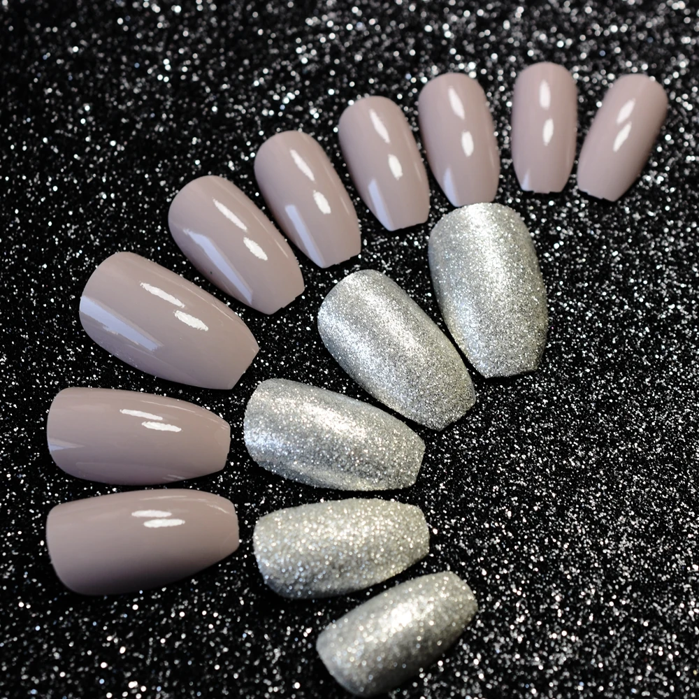 silver glitter acrylic nails