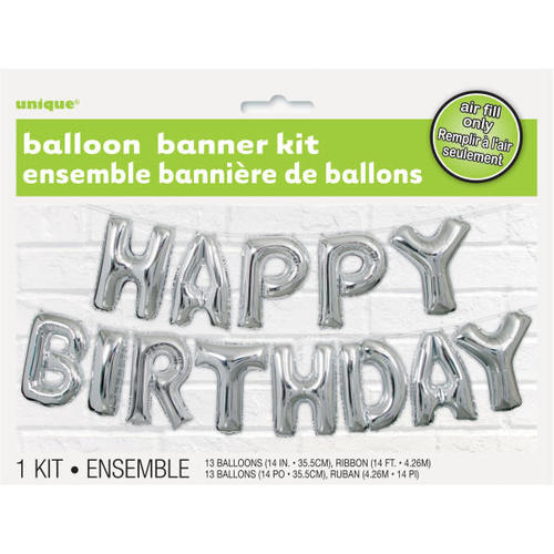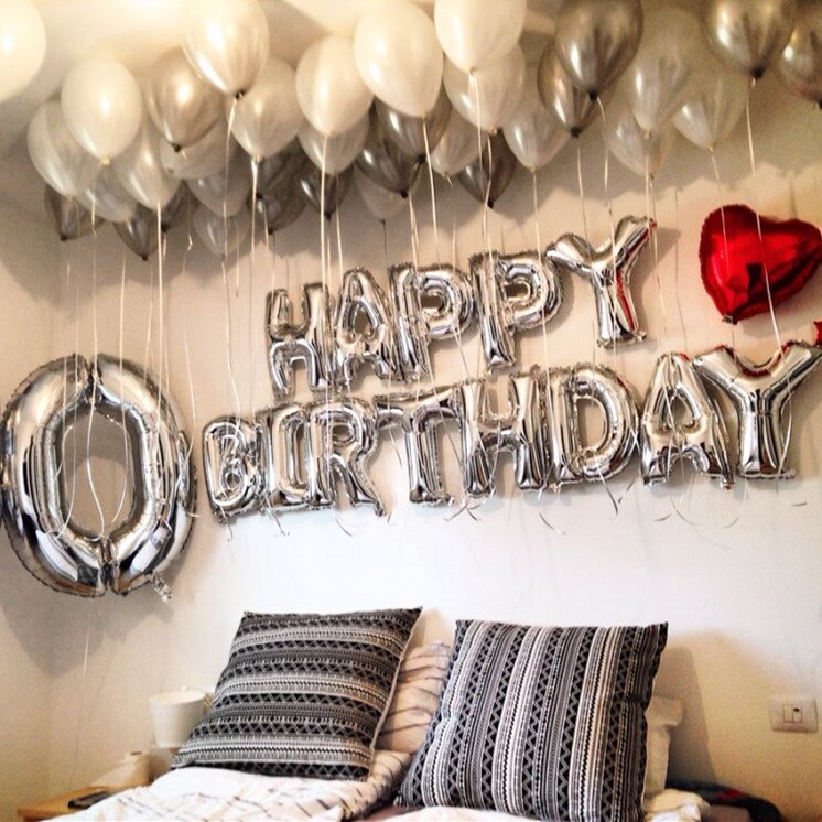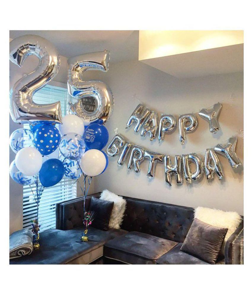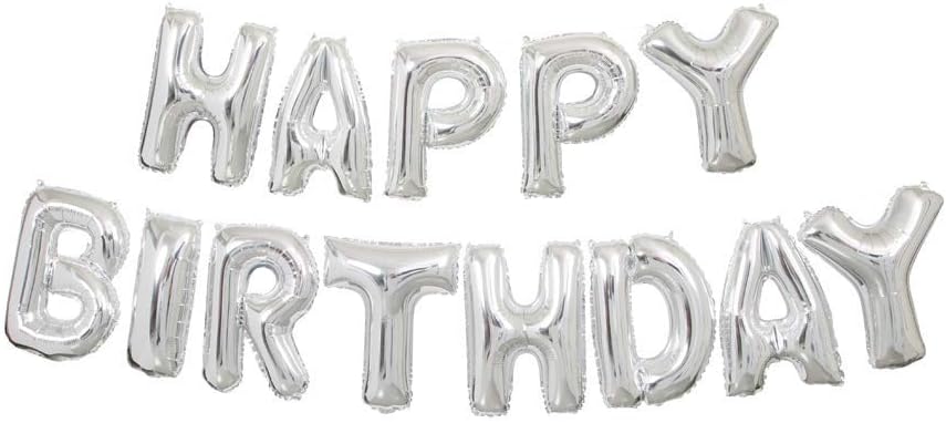 silver happy birthday balloons