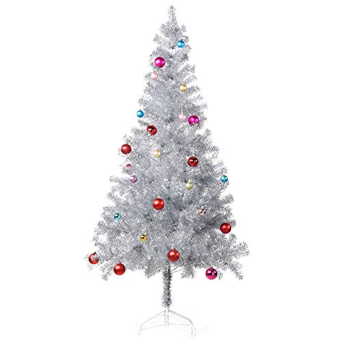 silver tinsel christmas tree