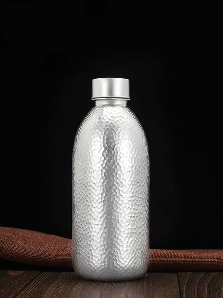 silver water bottle