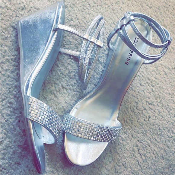 silver wedges heels