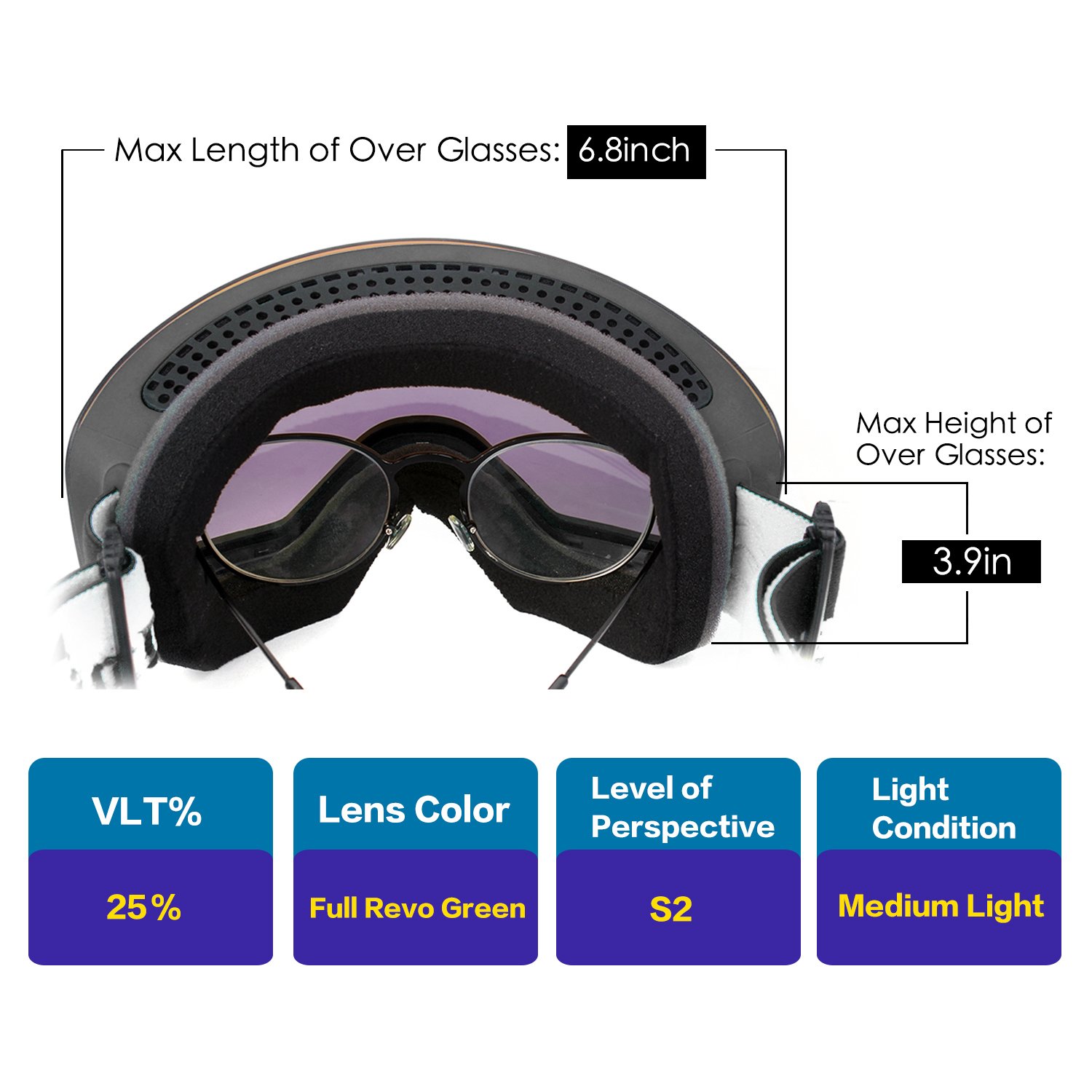 ski goggles over glasses