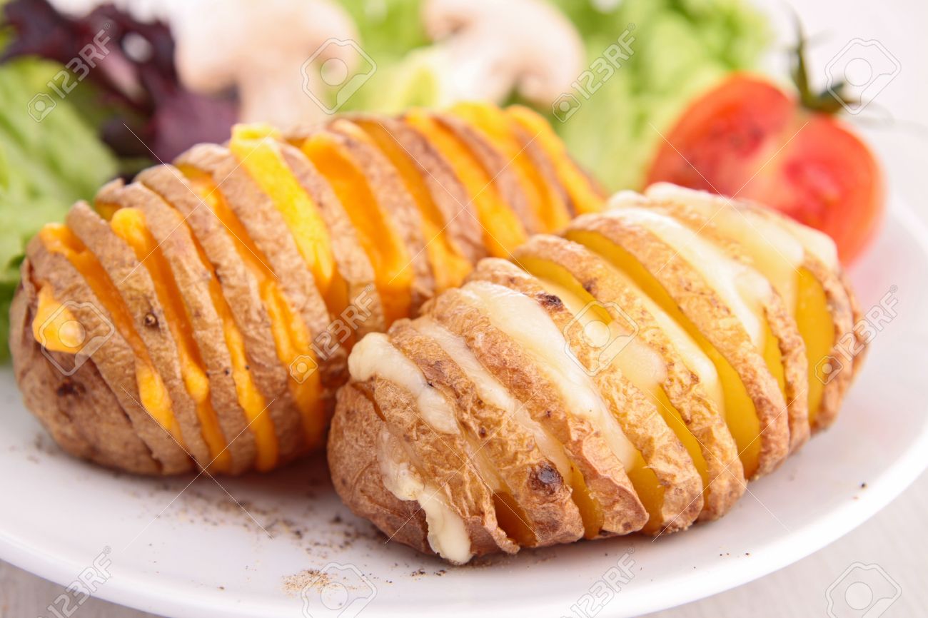 sliced baked potato with cheese