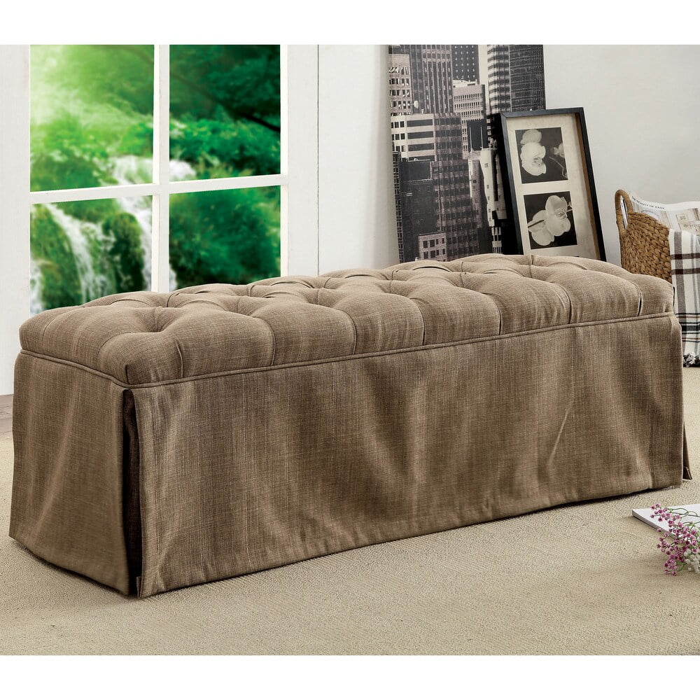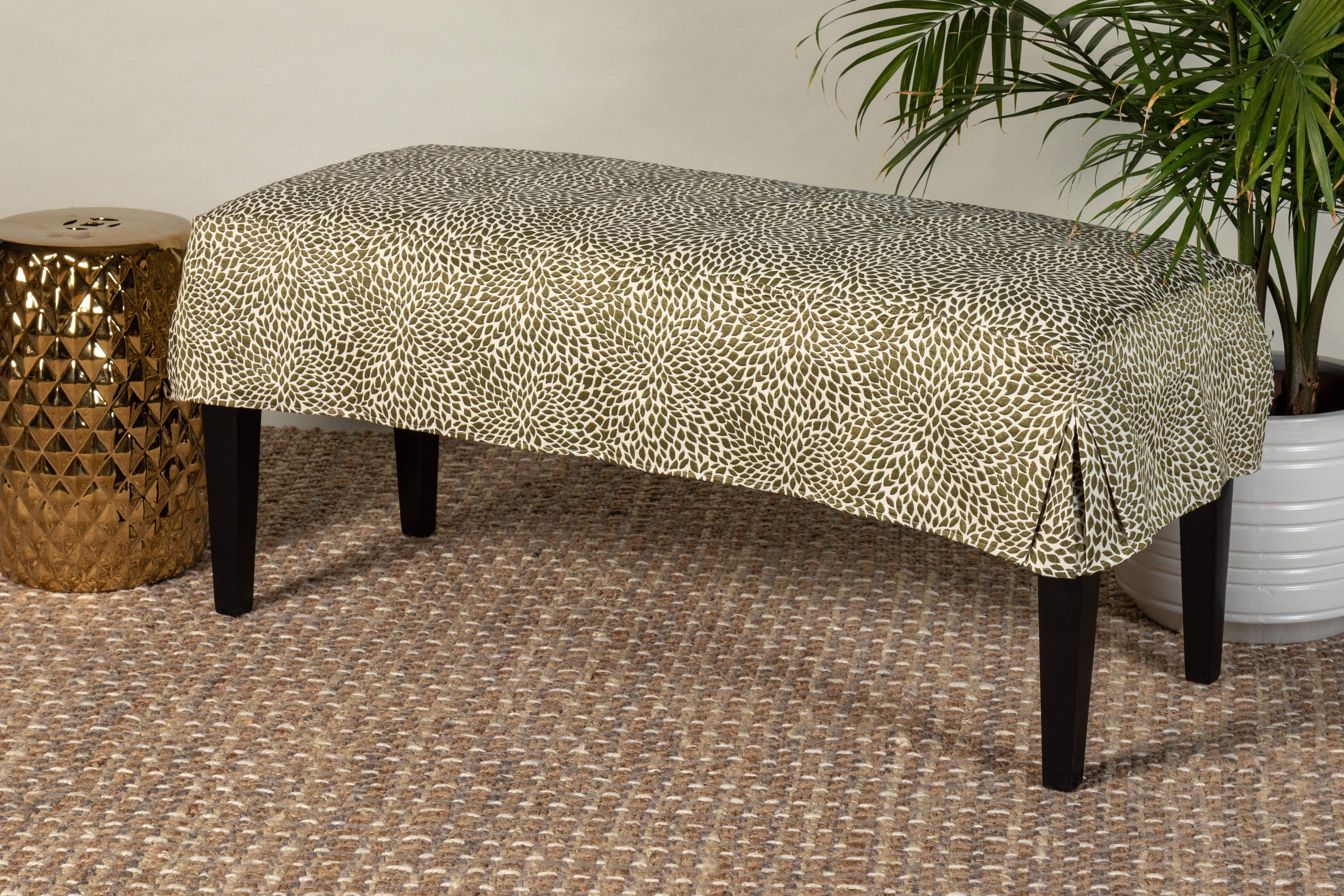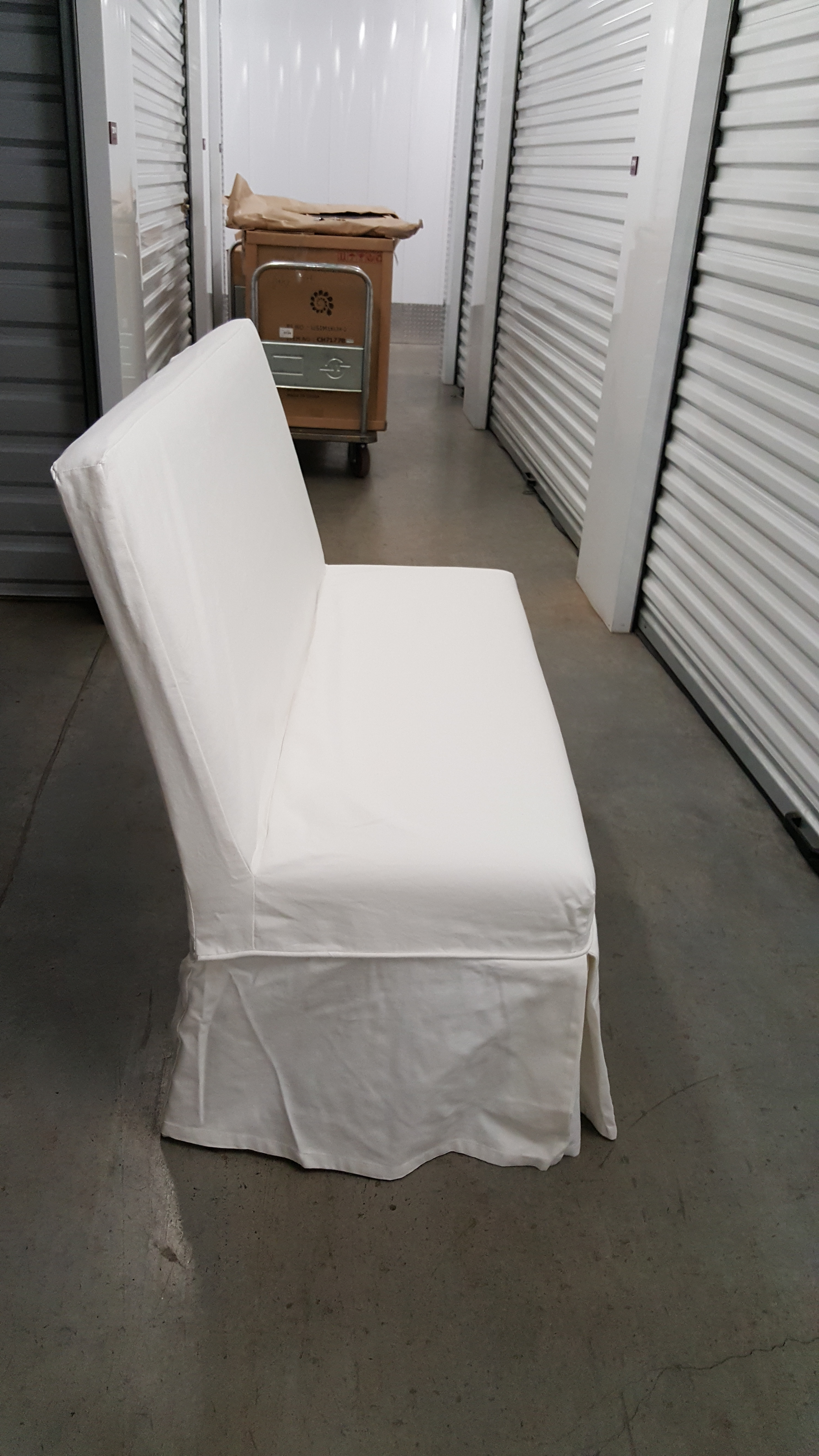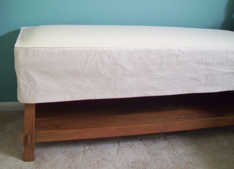 slipcovered bench