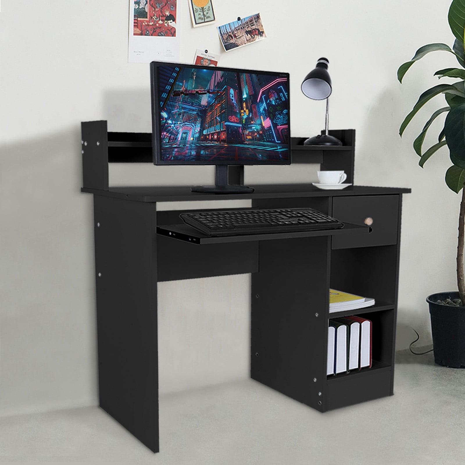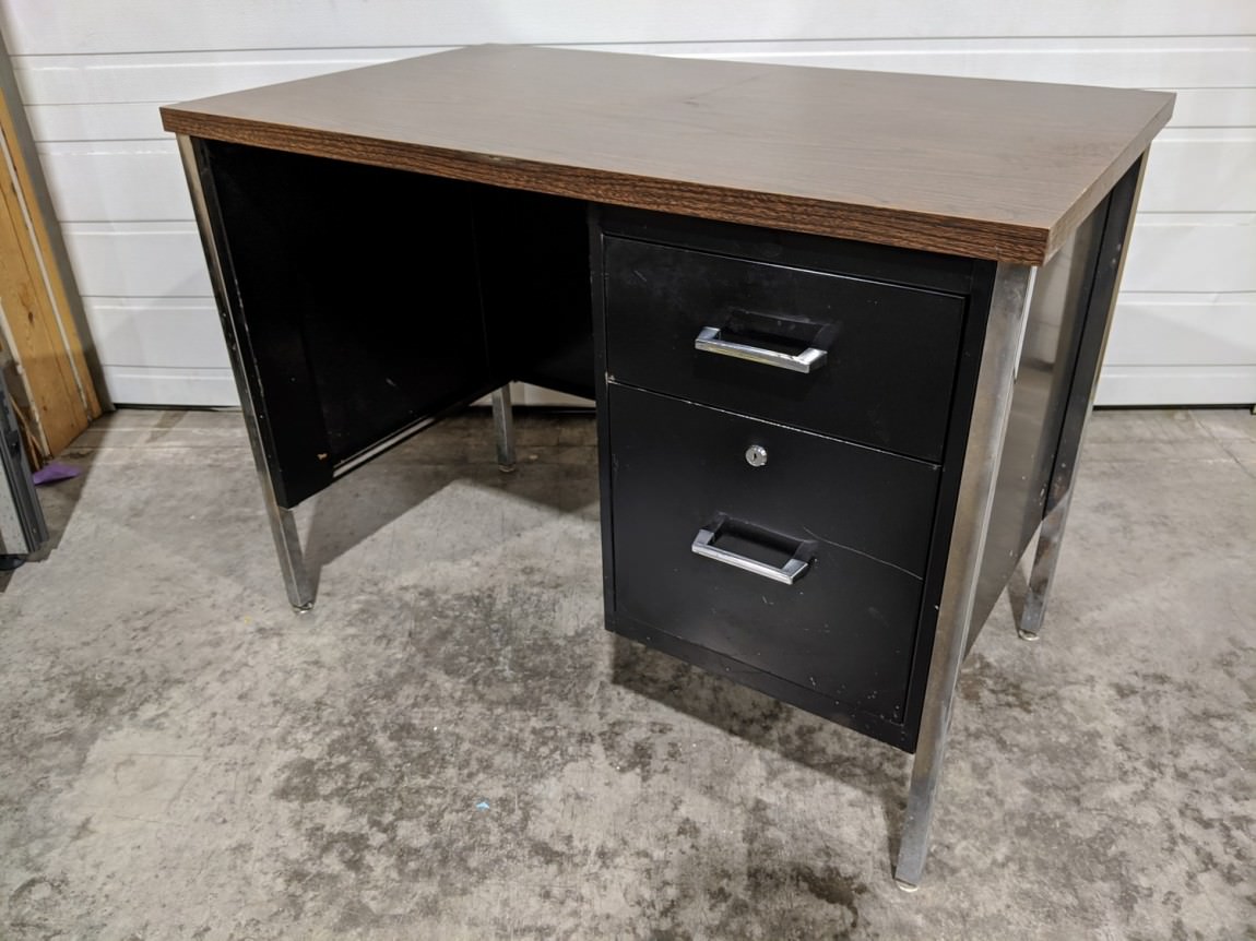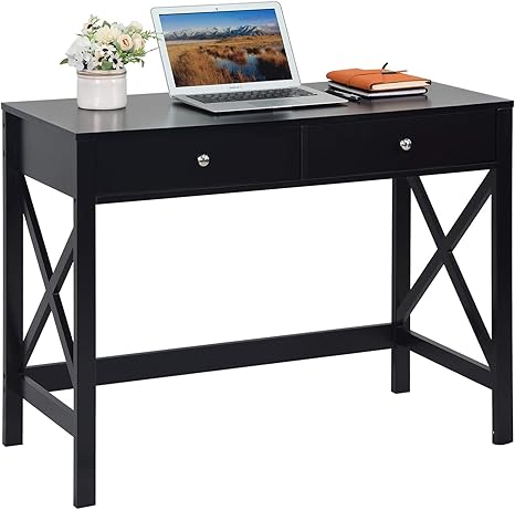 small black desk with drawers