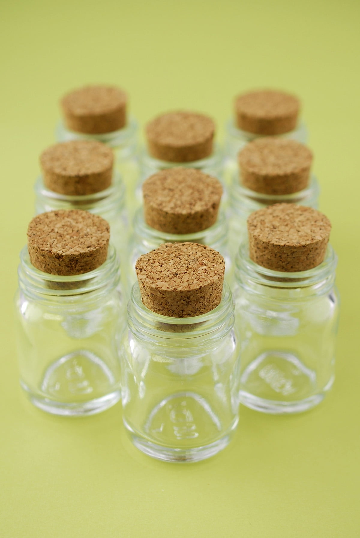 small glass bottles with cork