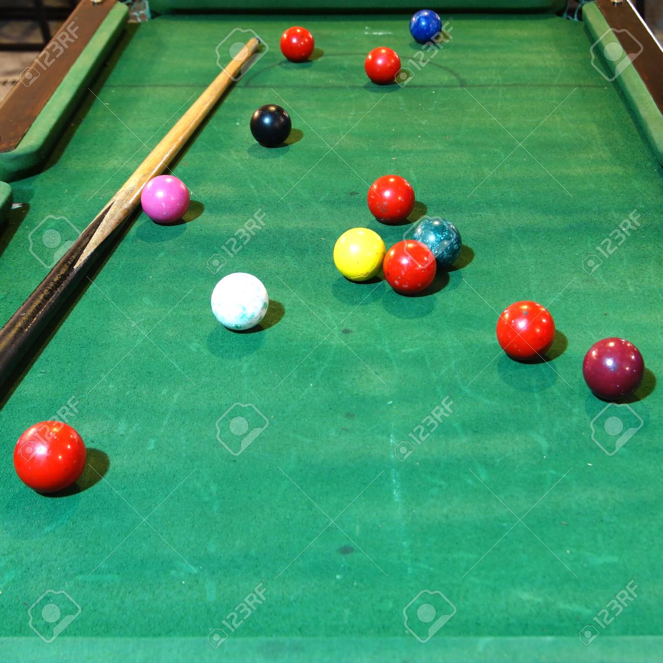 snooker balls on table