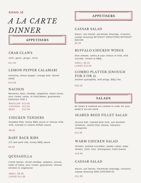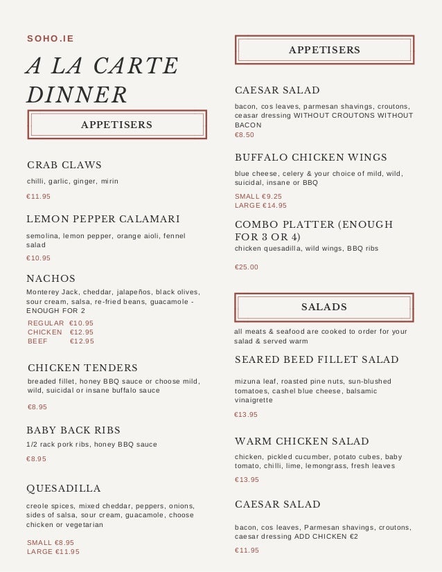 soho menu