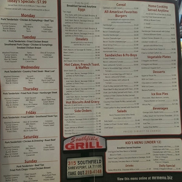 southfield grill menu