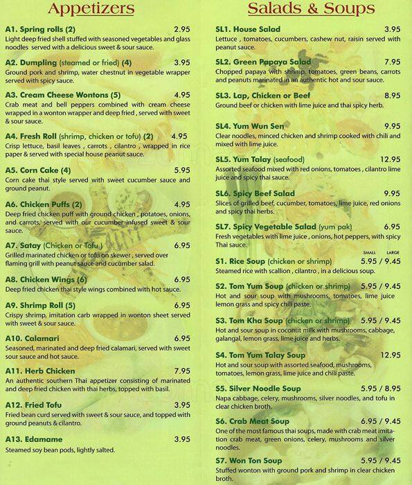 spicy thai menu