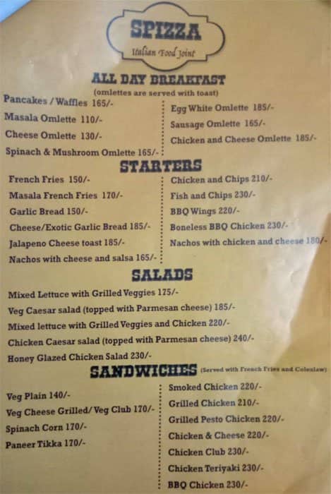 spizza menu