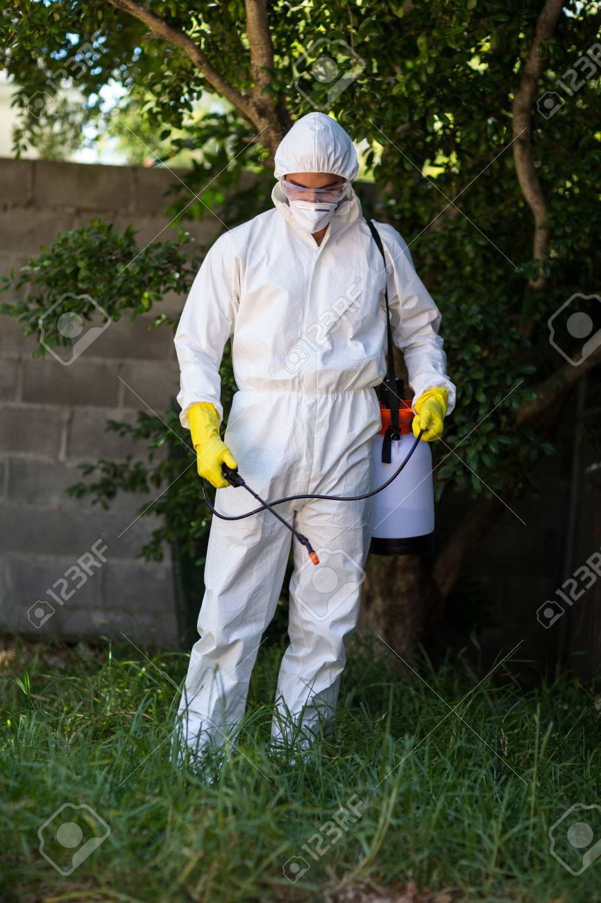 spraying lawn