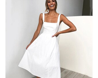 square neck white dress