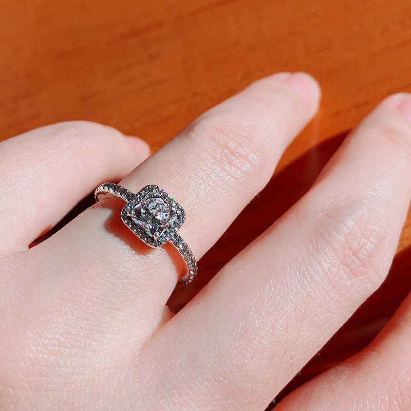 square sparkle halo ring