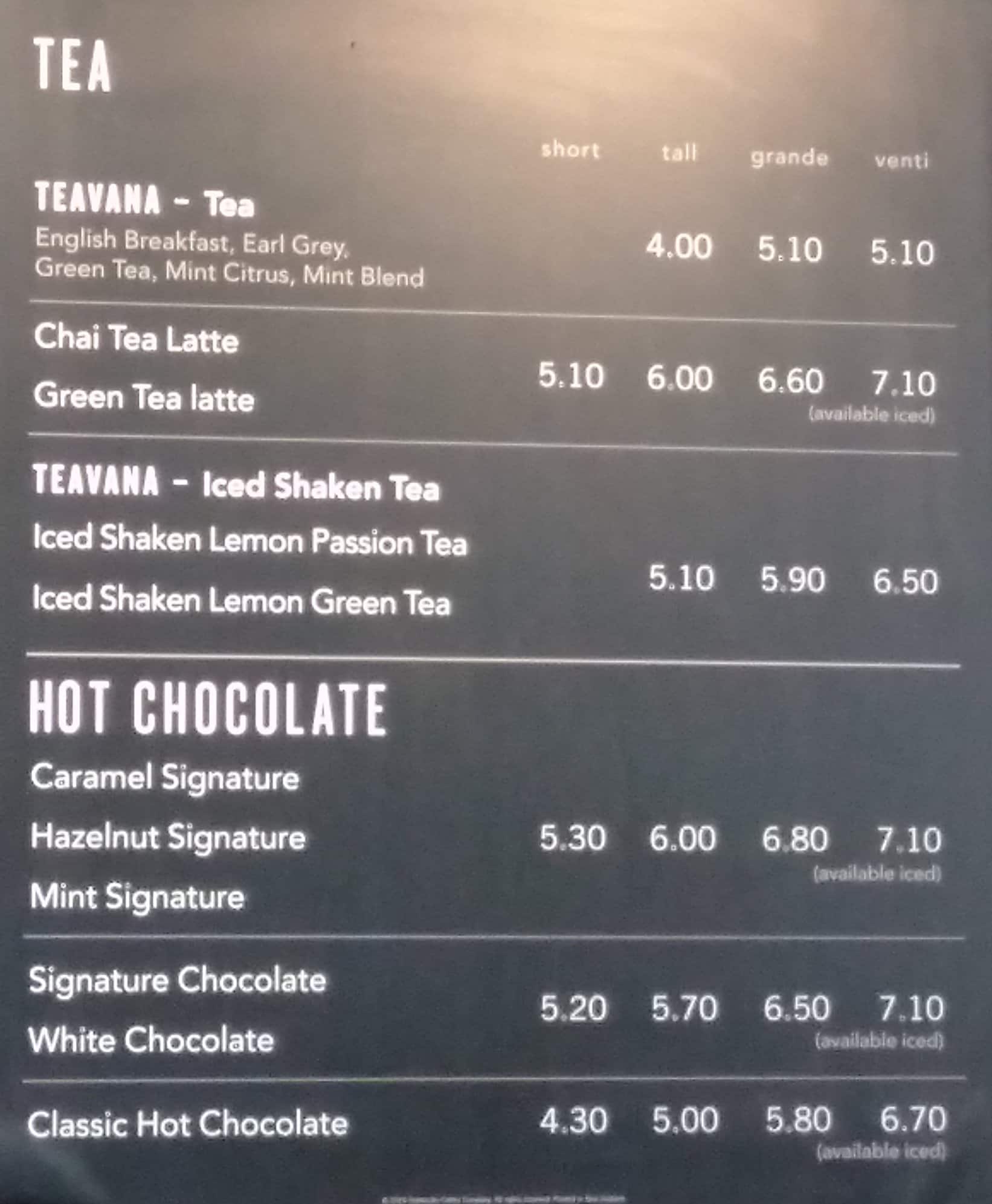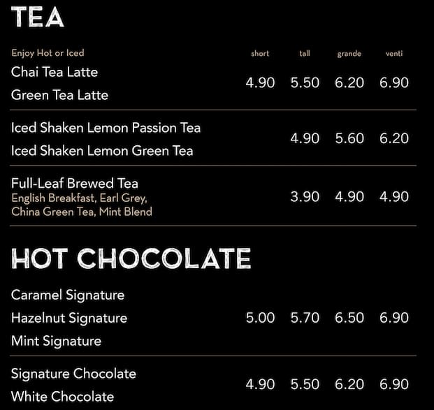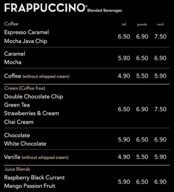 starbucks nz menu