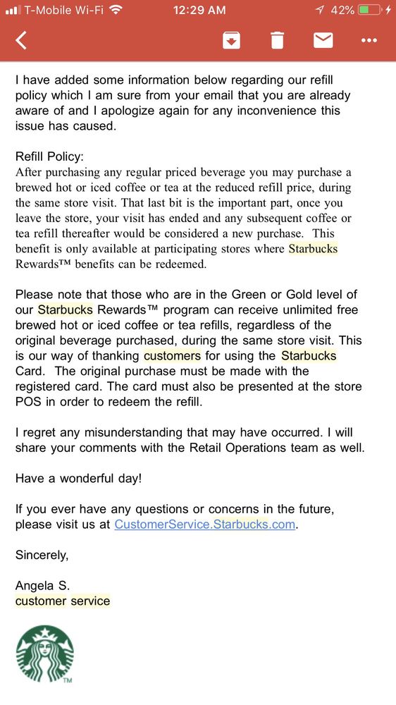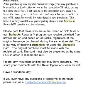 starbucks refill policy