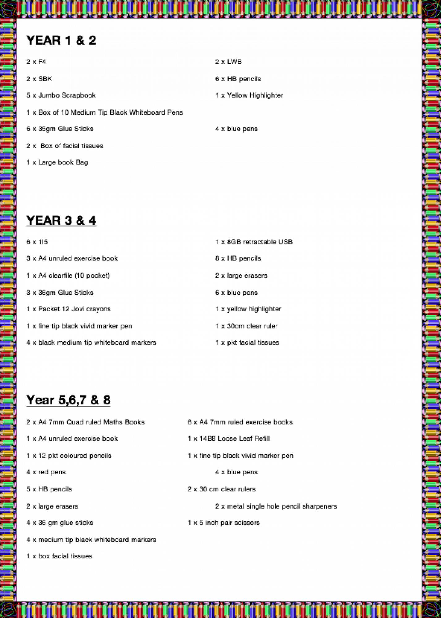 stationery lists