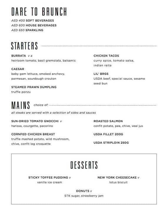 stk steakhouse menu