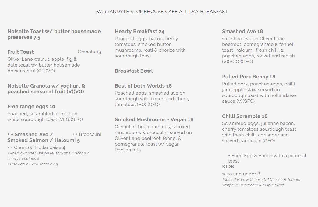 stonehouse menu
