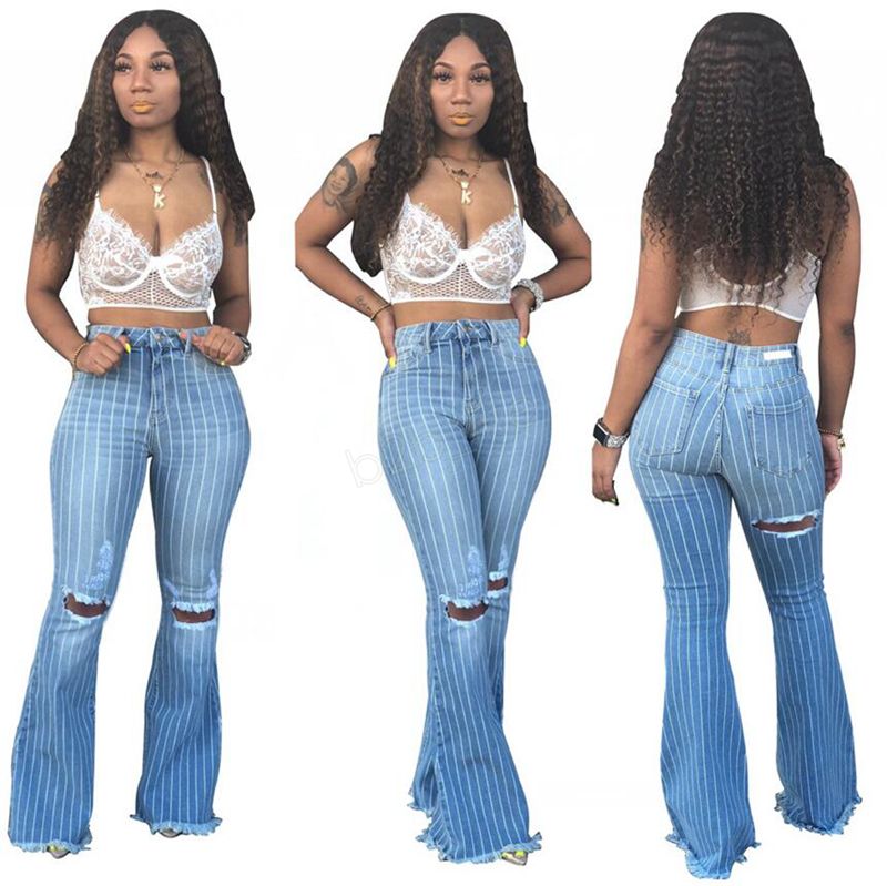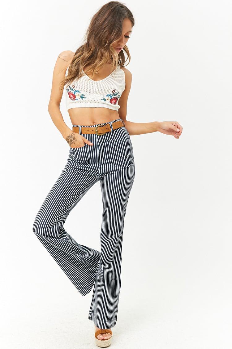 striped flare jeans