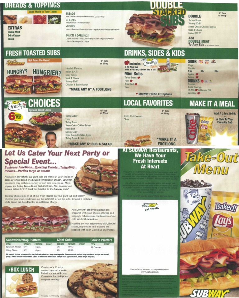 subway menu pdf