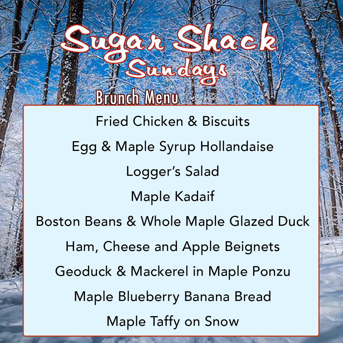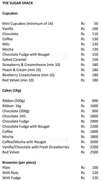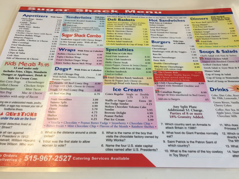 sugar shack menu