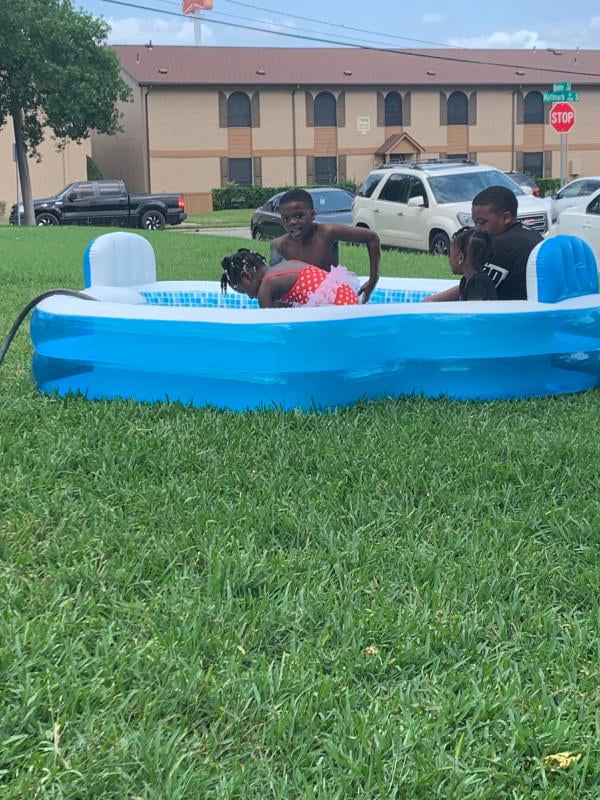 summer waves inflatable family pool with mosaic interior print