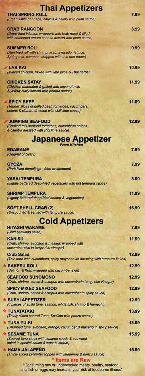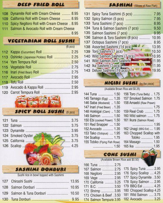 sun sushi menu