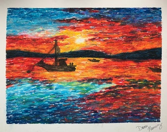 sunset drawing oil pastel