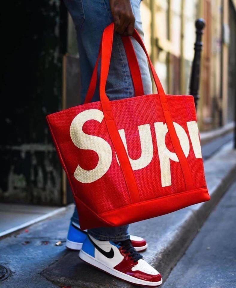 supreme raffia tote