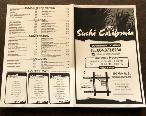 sushi california menu