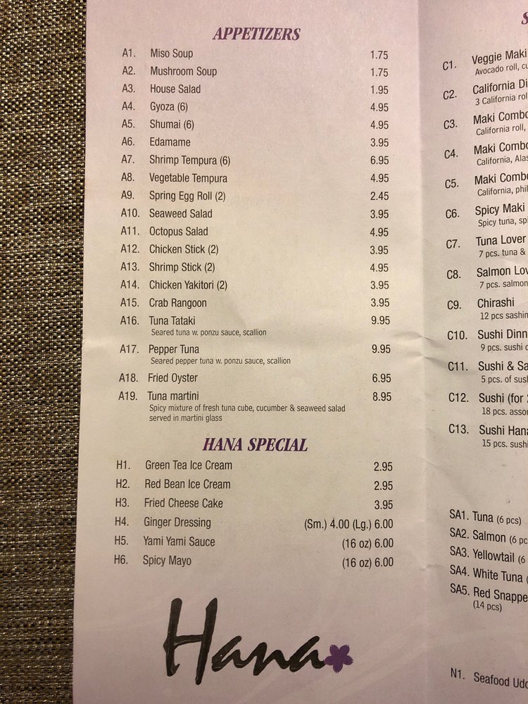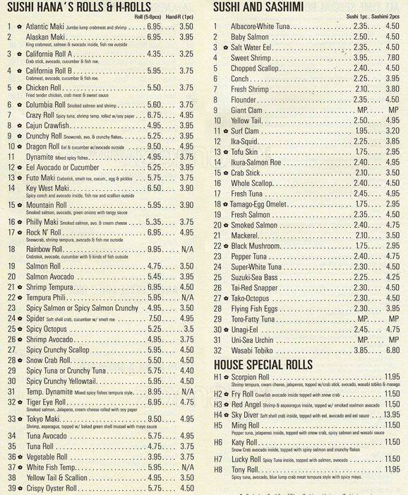 sushi hana menu