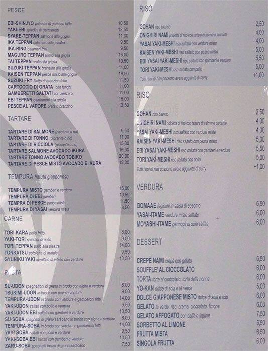 sushi nami menu