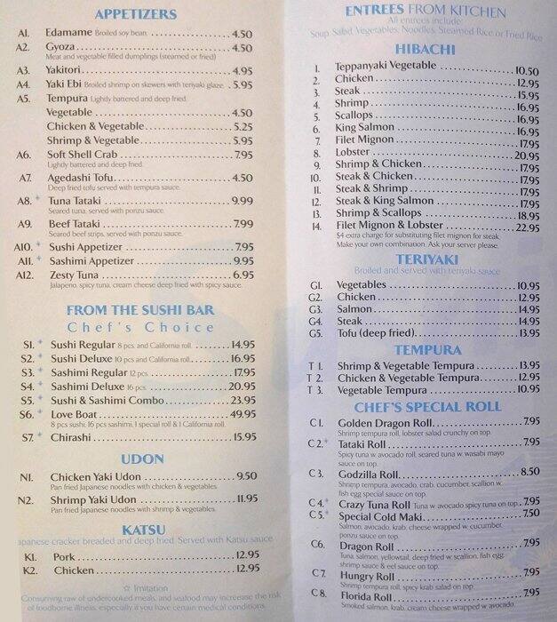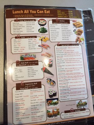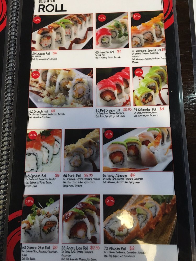 sushi ya menu
